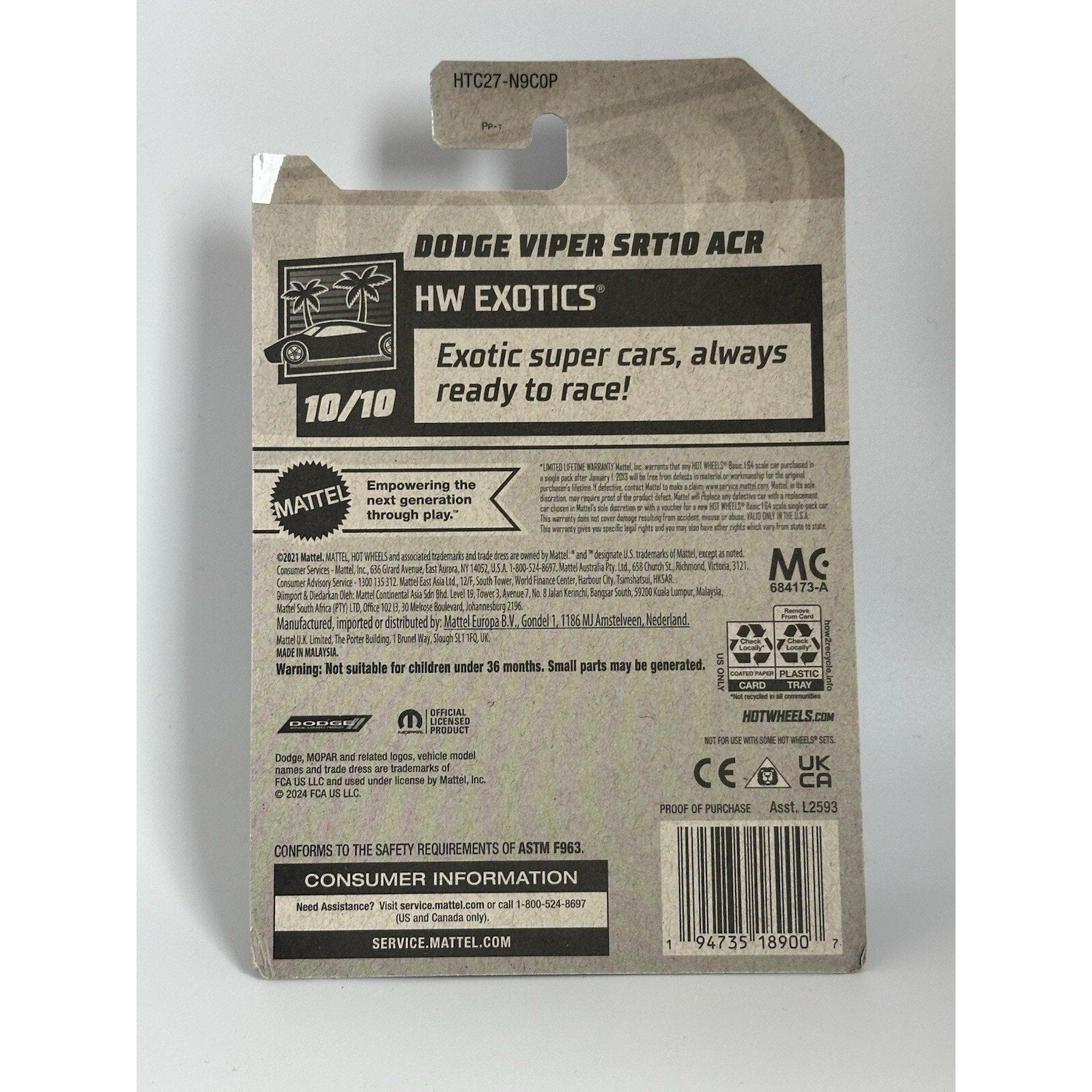 2024 Hot Wheels #241 HW Exotic 10/10 DODGE VIPER SRT10 ACR Silver w/Black Pr5 Sp. Condition is New. Shipped with Standard Shipping.