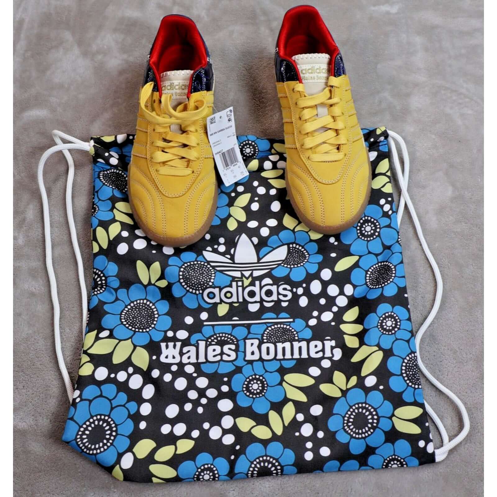 Includes original adidas Wales Bonner floral graphic drawstring shoe bag and attached hang tag.
