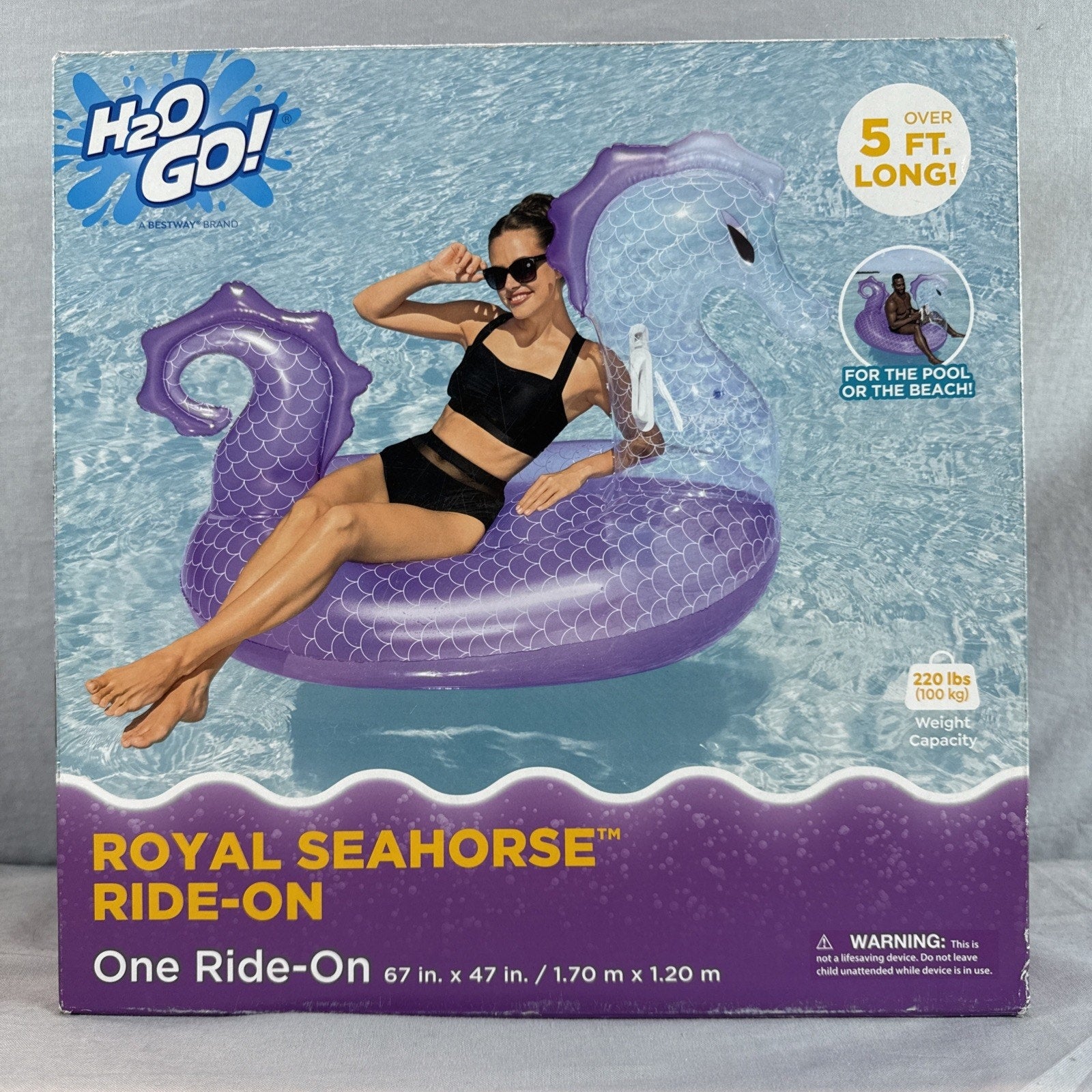 Make a splash this summer with the Bestway H2O GO! Royal Seahorse Ride-On Inflatable Floatie! This fun and colorful float is perfect for kids and adults alike.
