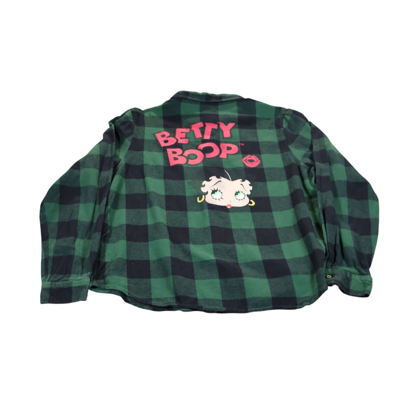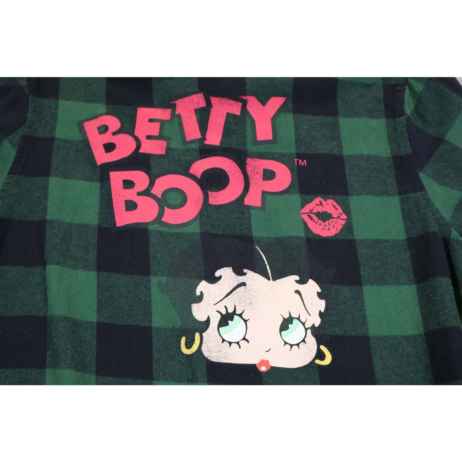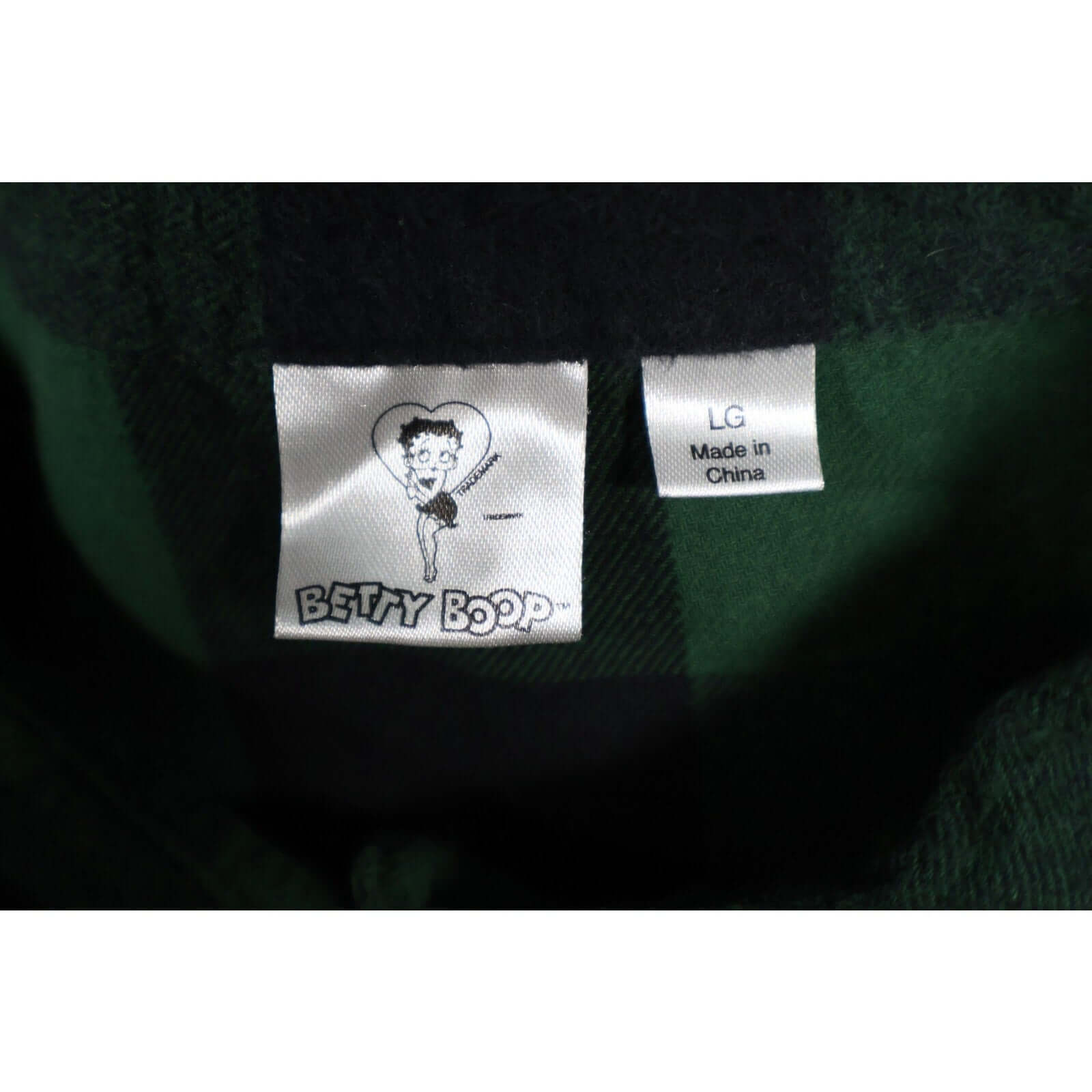 Betty Boop Shirt Womens Large Green Black Plaid Flannel Button Up Cartoon Graphic