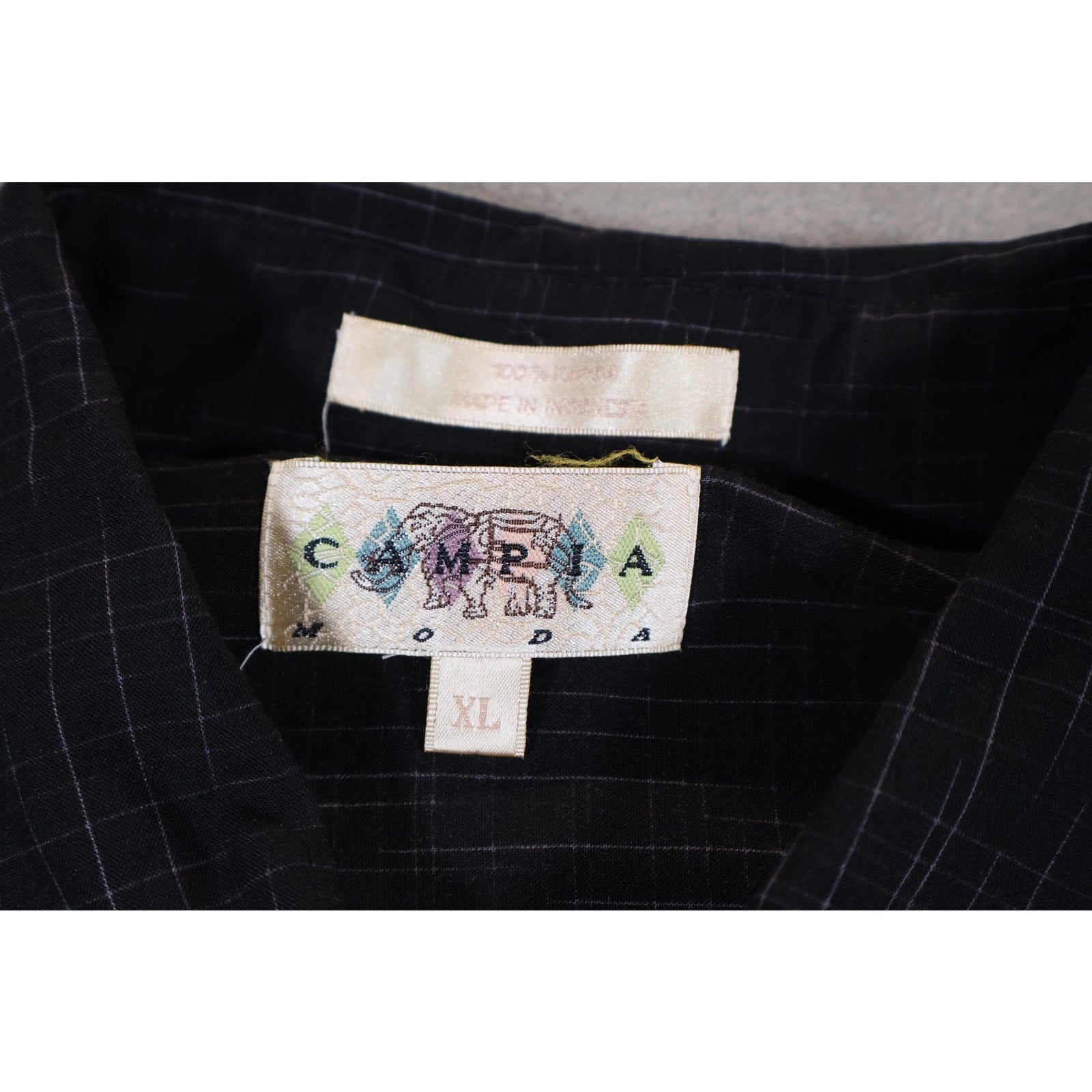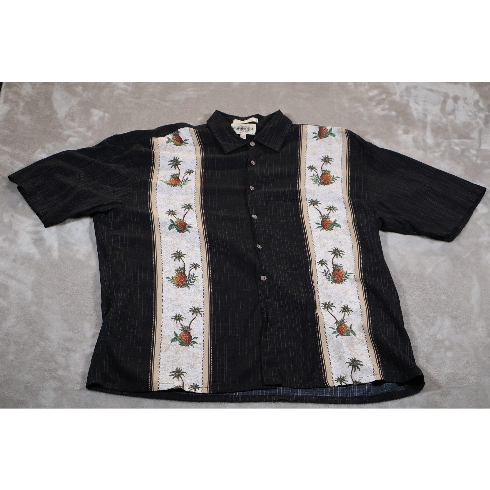 Campia Moda Shirt Mens XL Black Pineapple Palm Tree Embroidered Hawaiian Tropical