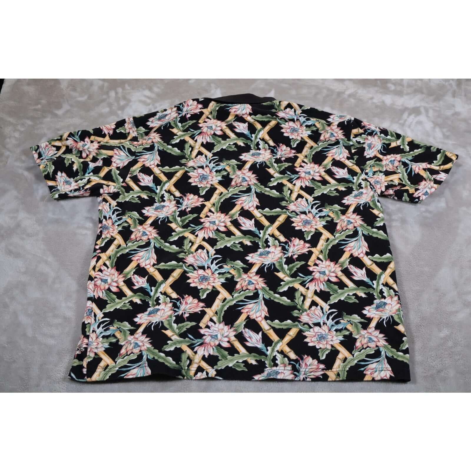 Cooke Street Shirt Mens Large Black Floral Bamboo Hawaiian Polo Short Sleeve