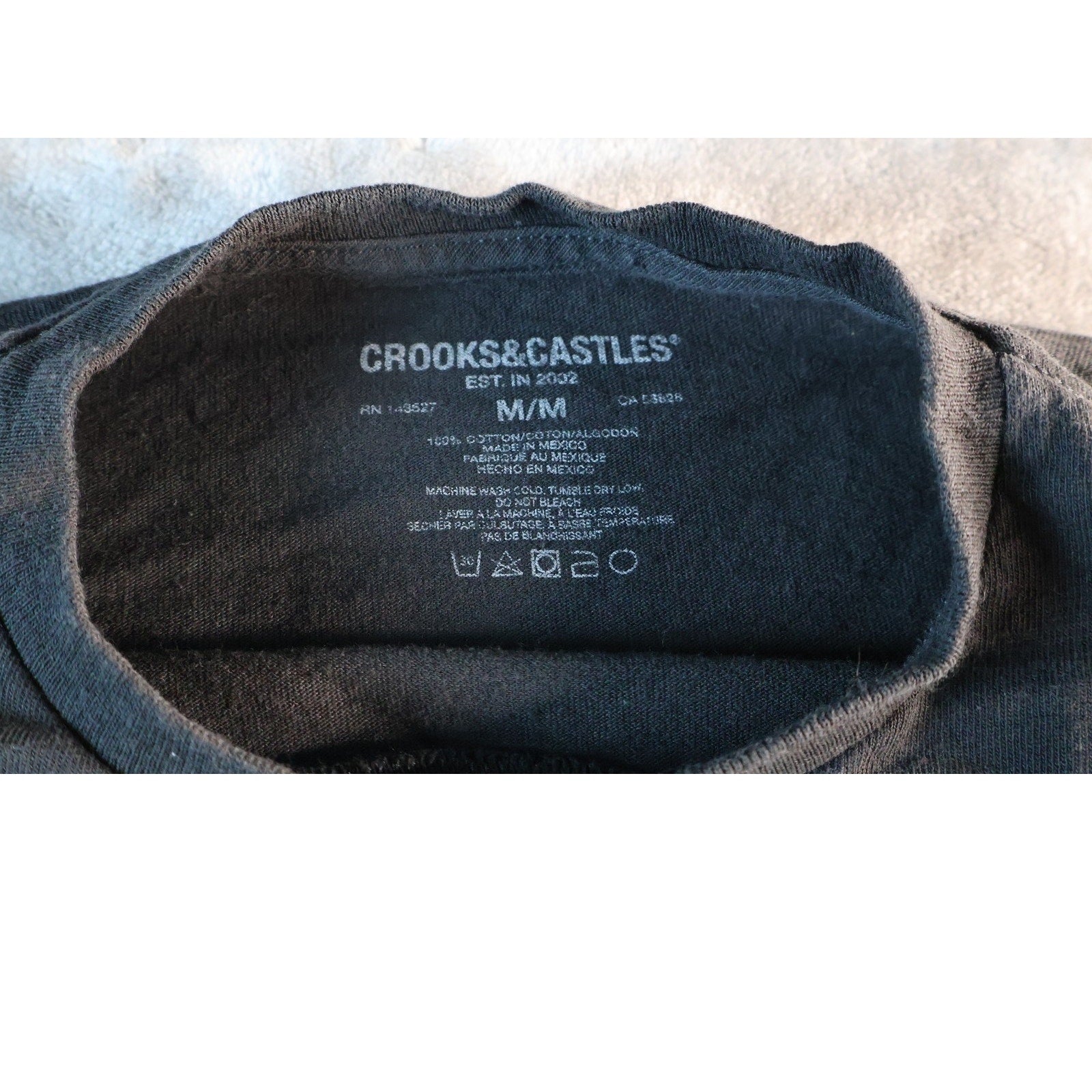 Brand details: Crooks & Castles, Los Angeles, EST 2002 printed on sleeve and chest
