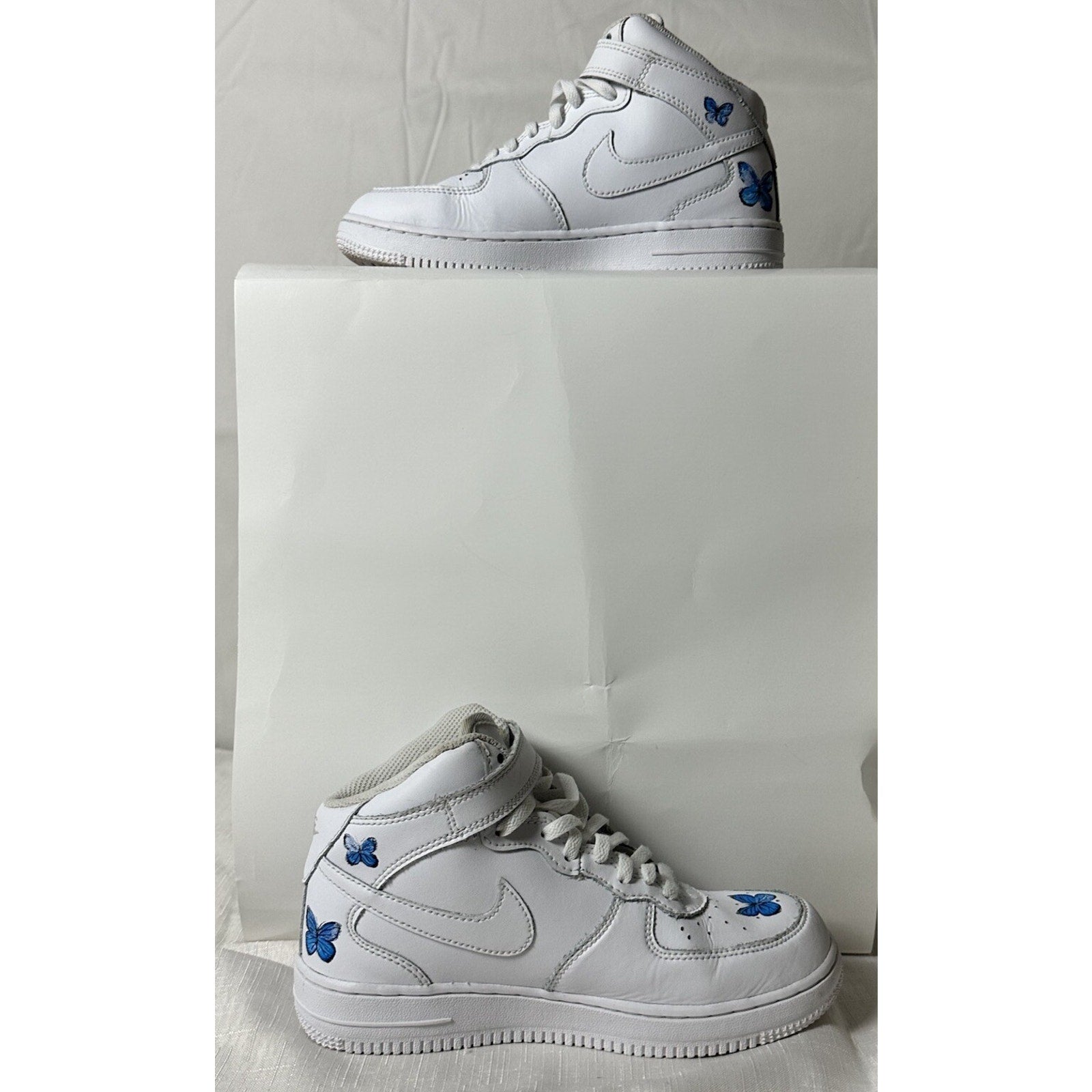 Elevate your sneaker game with these one-of-a-kind, custom-designed blue Air Force 1 high-tops! These sneakers feature a unique butterfly design, making them a true statement piece. Stand out from the crowd and express your individuality with these stunning, hand-painted kicks. Perfect for adding a pop of color and personality to any outfit. Grab them now and step into a world of unique style!