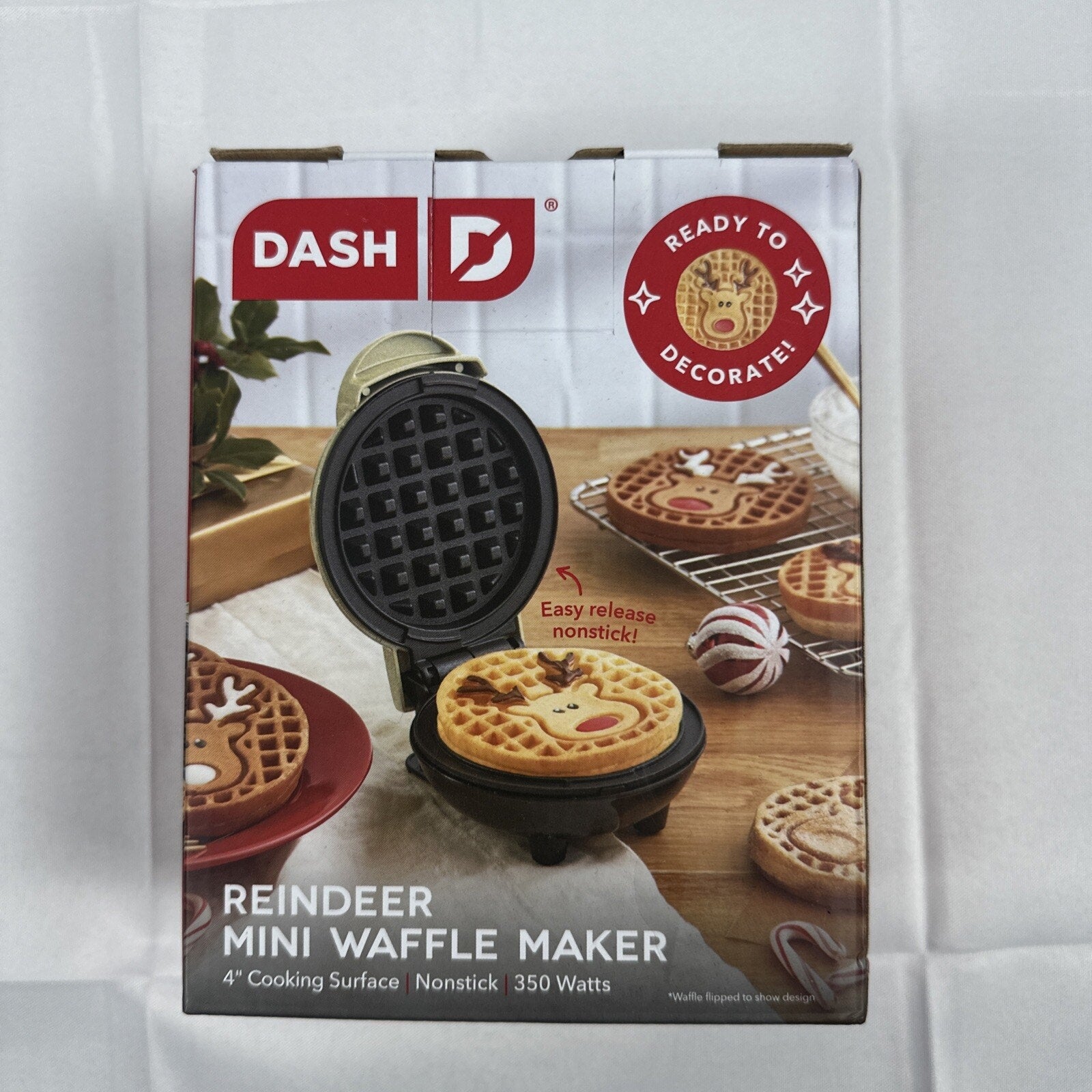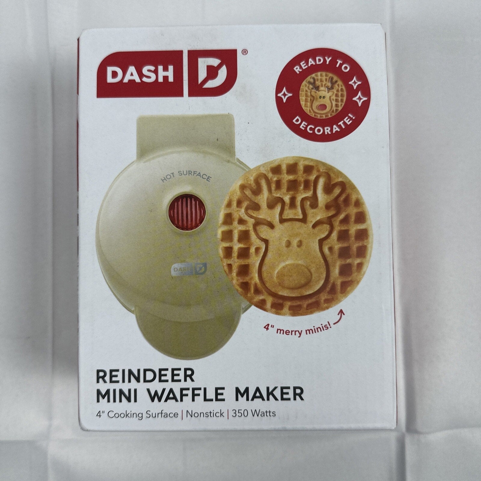 Dash Electric "REINDEER" 4" Mini Waffle Maker, Non-Stick 350 Watts -- New in Box