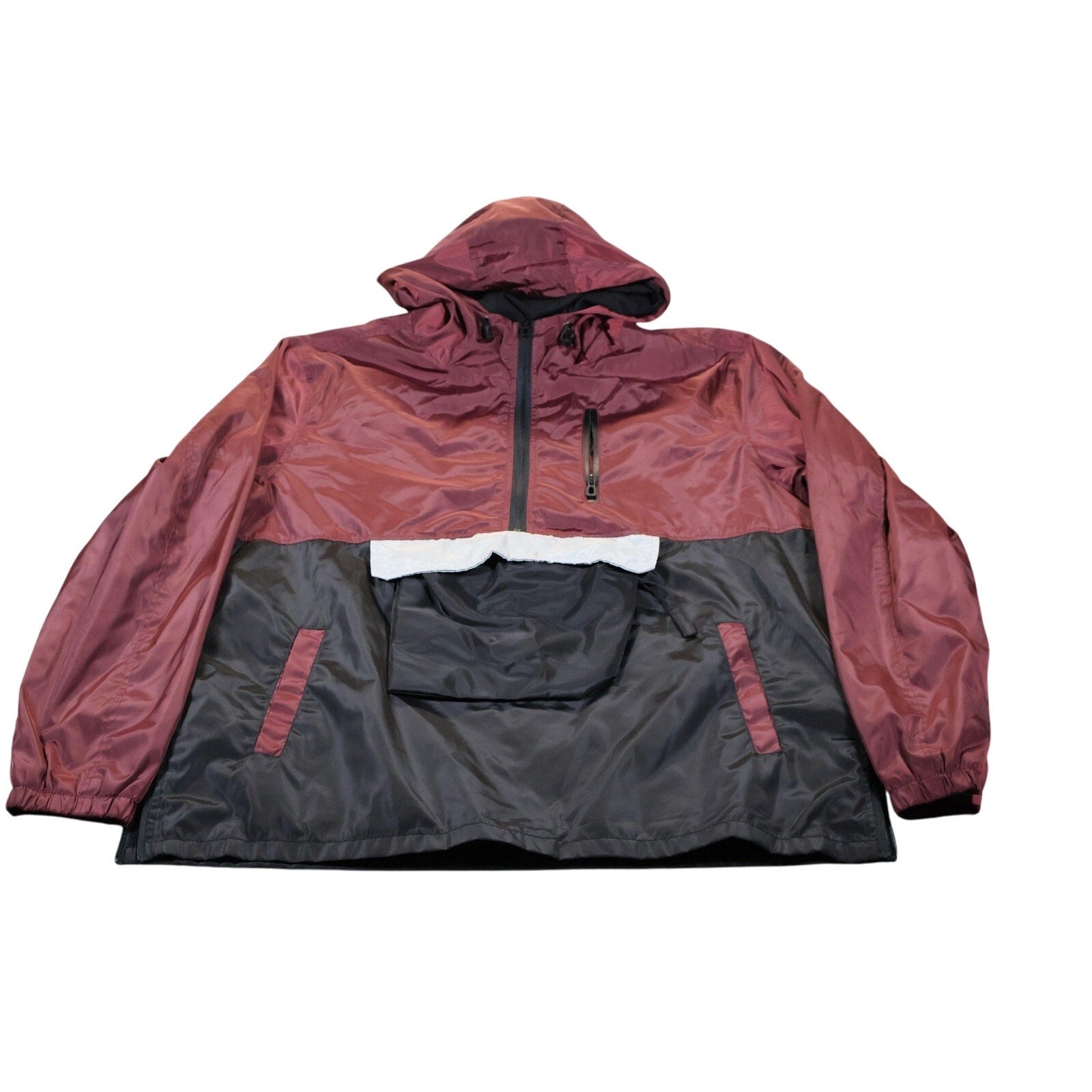 Distortion Jacket Mens XL Maroon Black Hooded Windbreaker Pullover