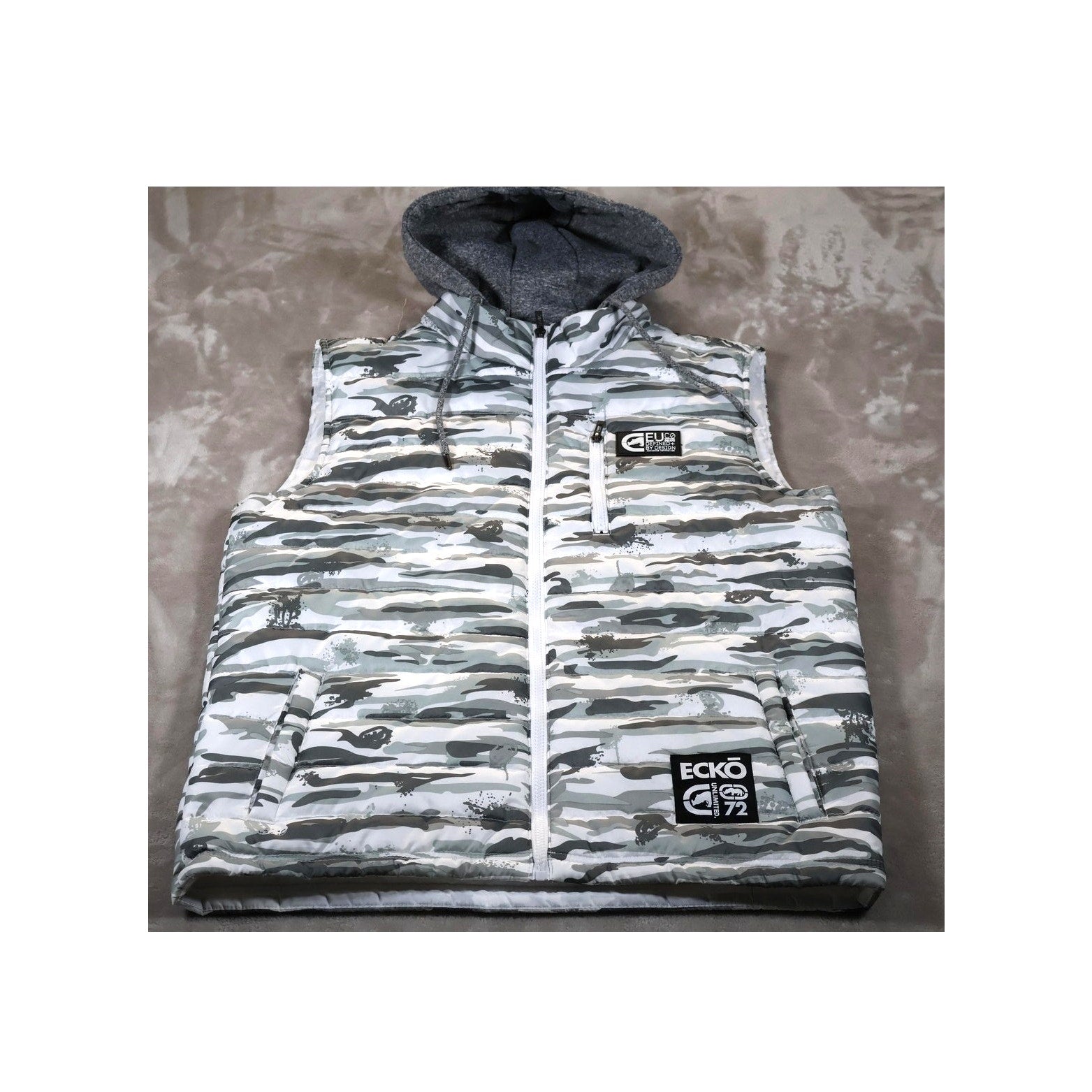 Ecko Unlimited Vest Mens Large Gray Camo Hooded Puffer Sleeveless Jacket Zip