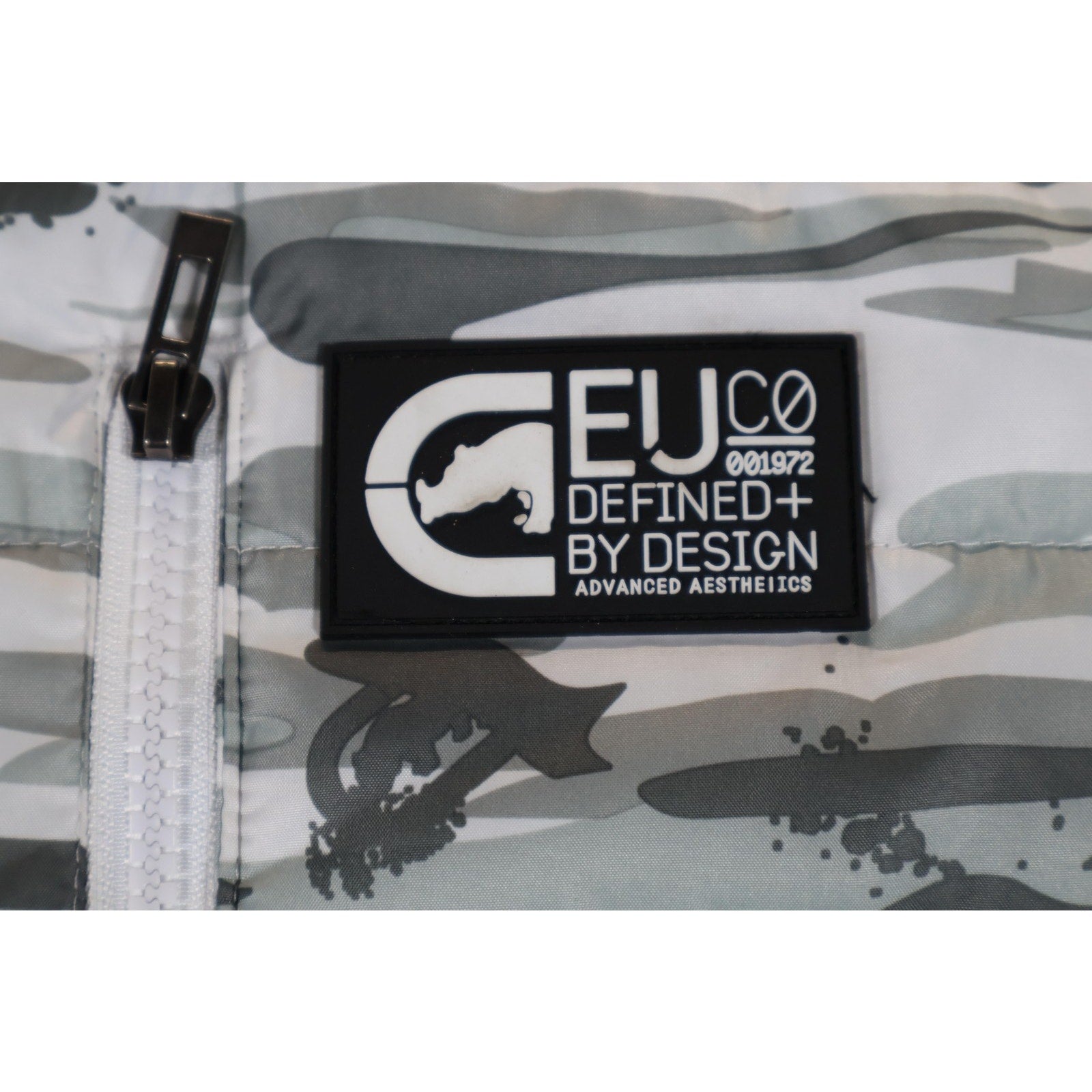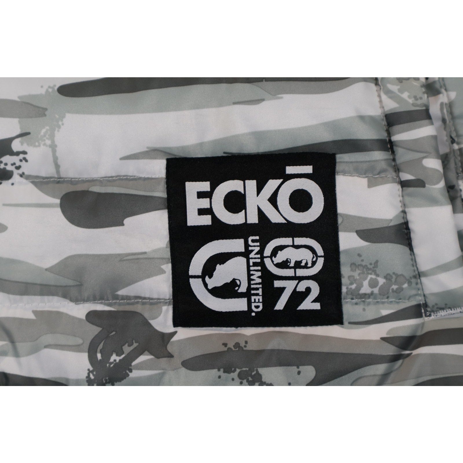 Allover gray and white camouflage print with Ecko Unlimited logo patch at front left chest and front lower side
