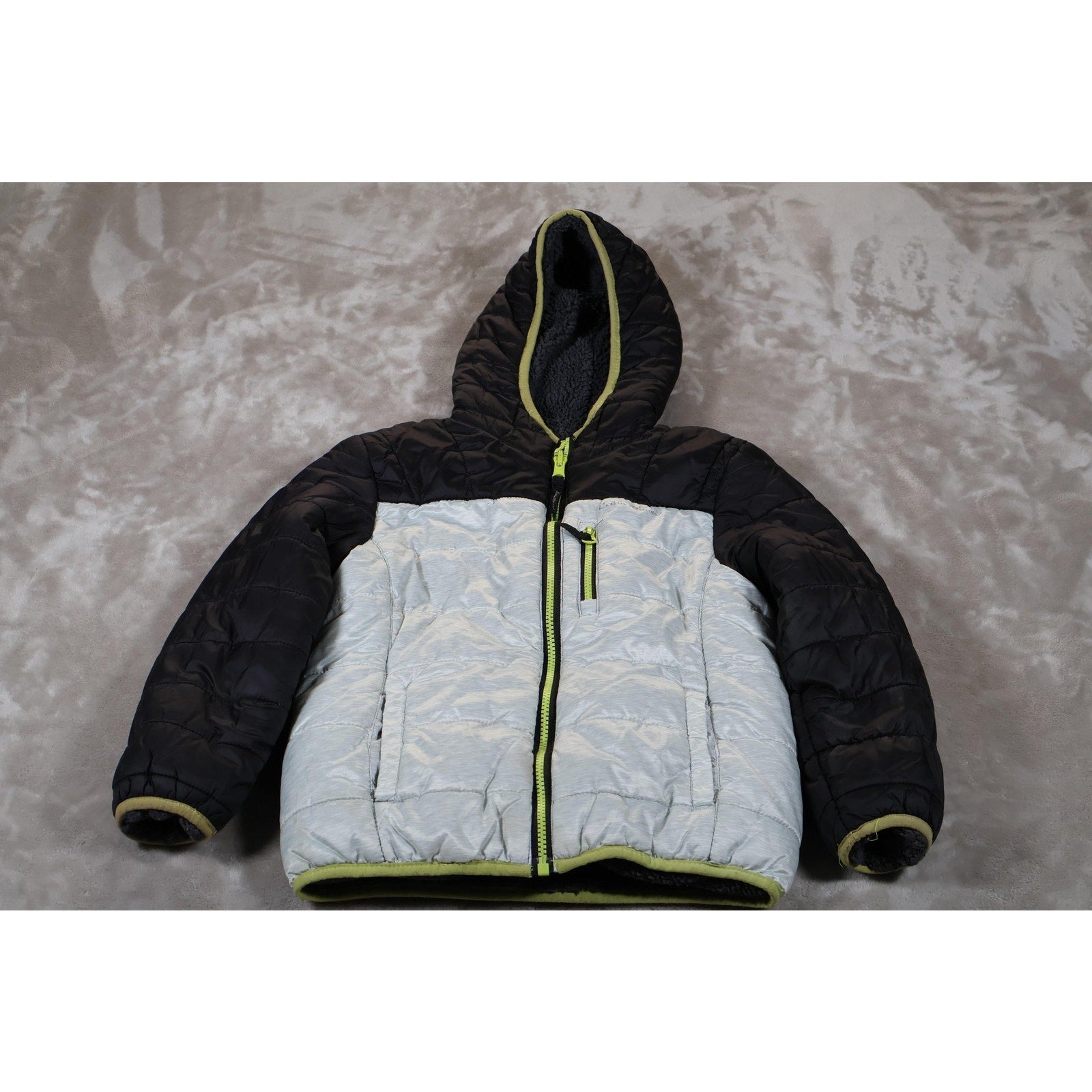 Eddie Bauer Jacket Boys Medium Black Gray Hooded Full Zip Sherpa Lined Winter Coat