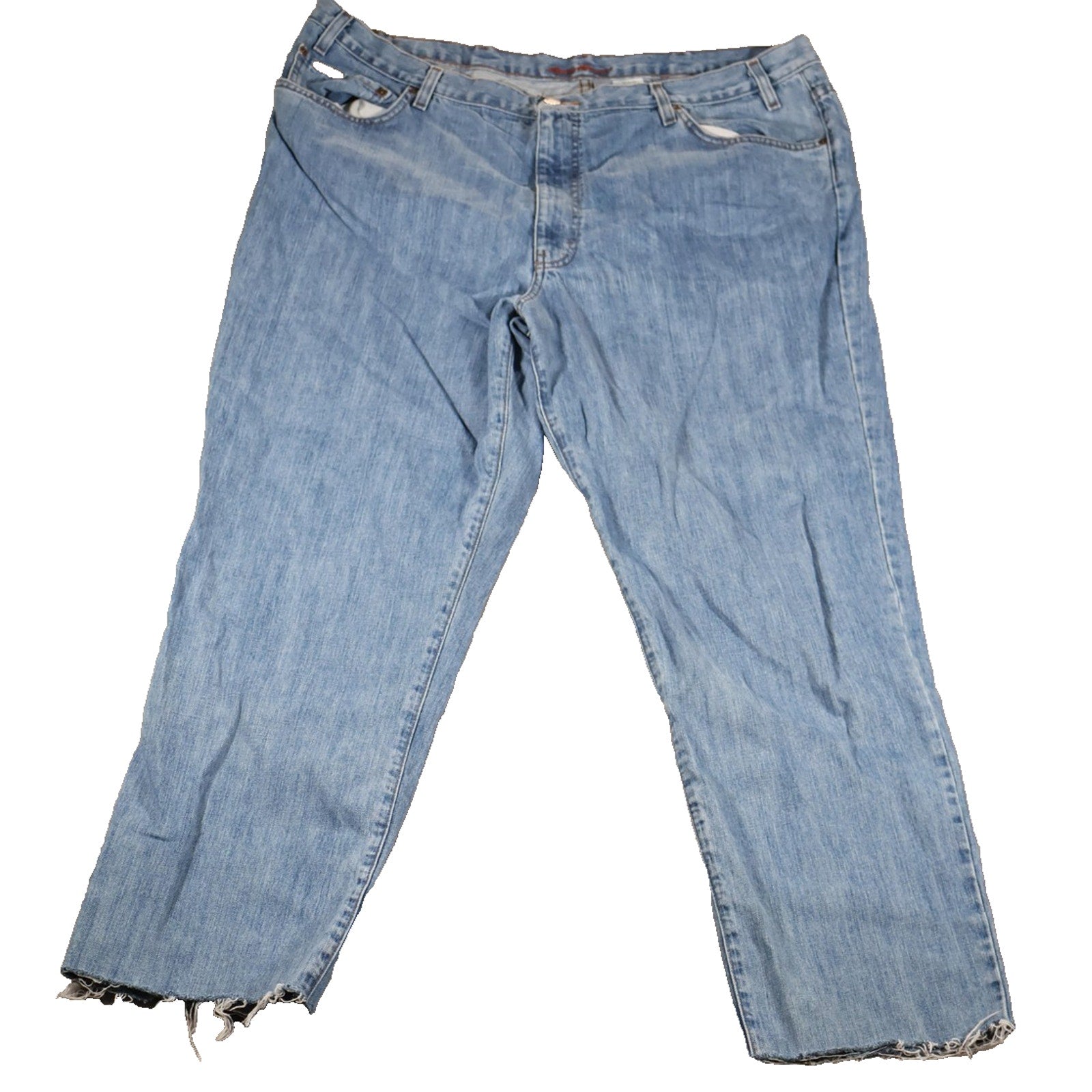 Eddie Bauer Jeans Mens 44x36 Blue Classic Fit Premium Denim Distressed Raw Hem