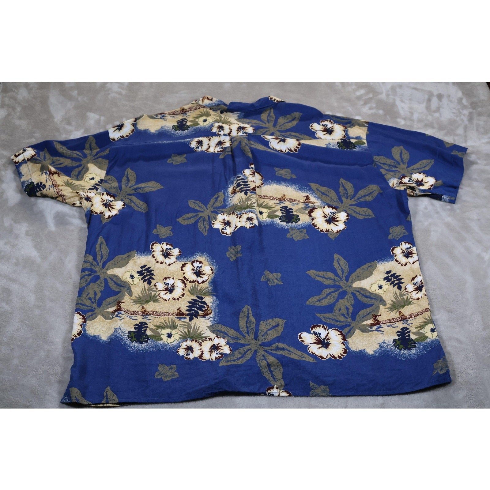 Feldini Shirt Mens 2XL Blue Floral Hawaiian Rayon Short Sleeve Button Up Aloha