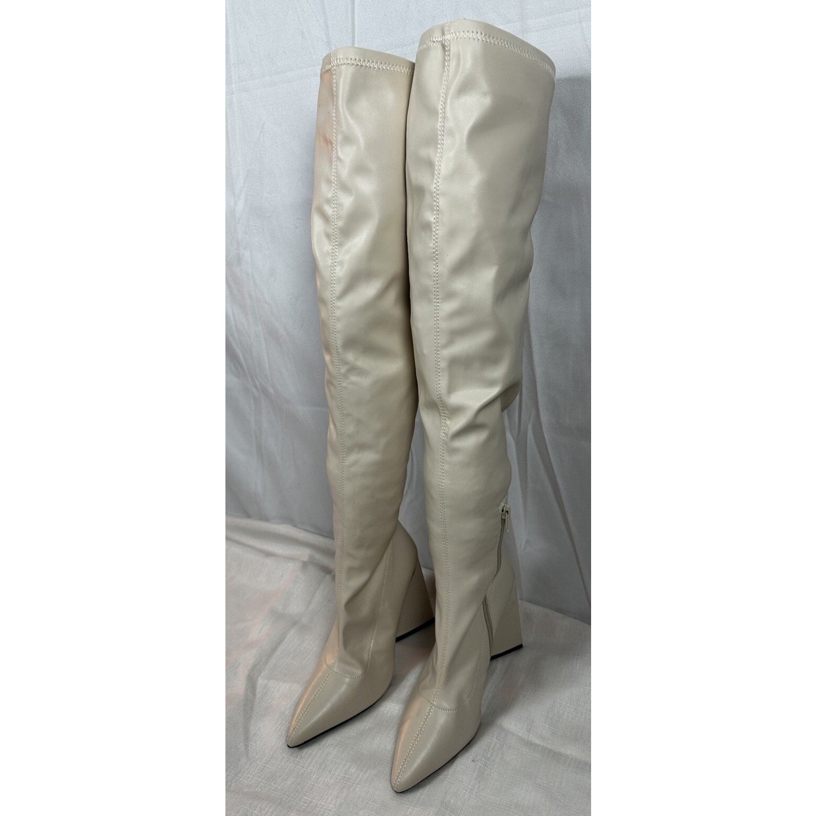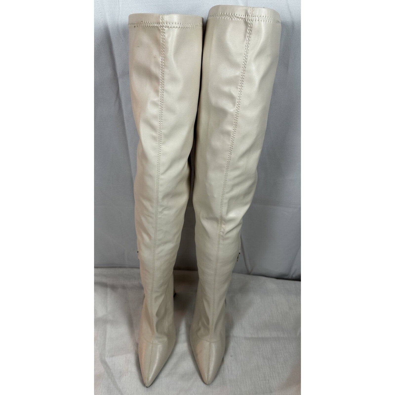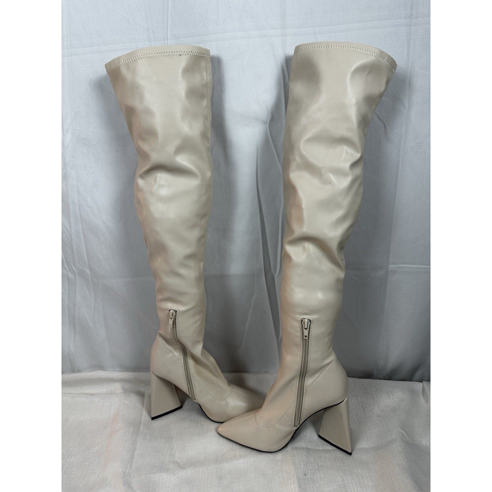 Forever 21 Women's Faux Leather Over-the-Knee Boots in Cream Size 6