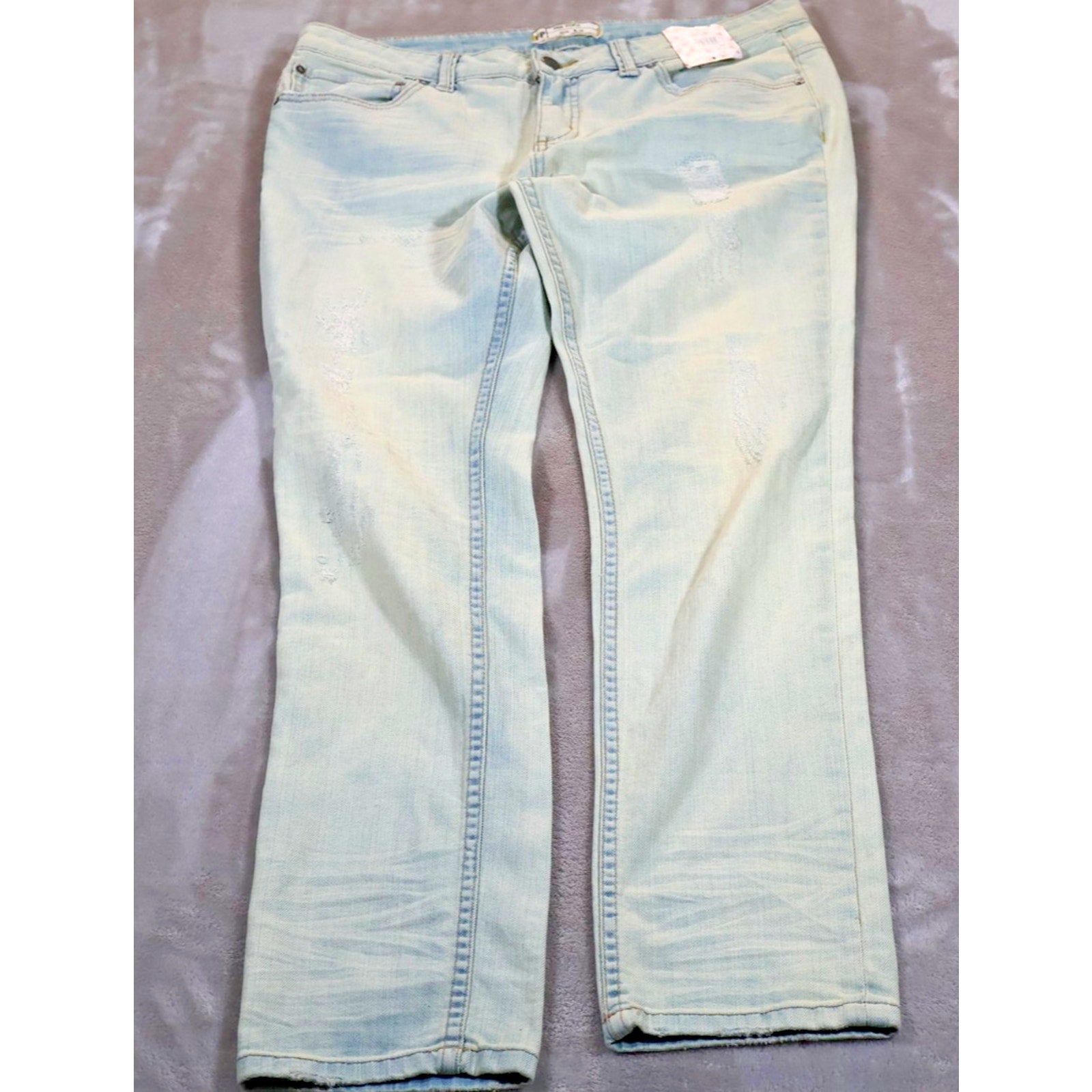 Classic light wash denim with subtle distressed detailing and fade on front of thighs