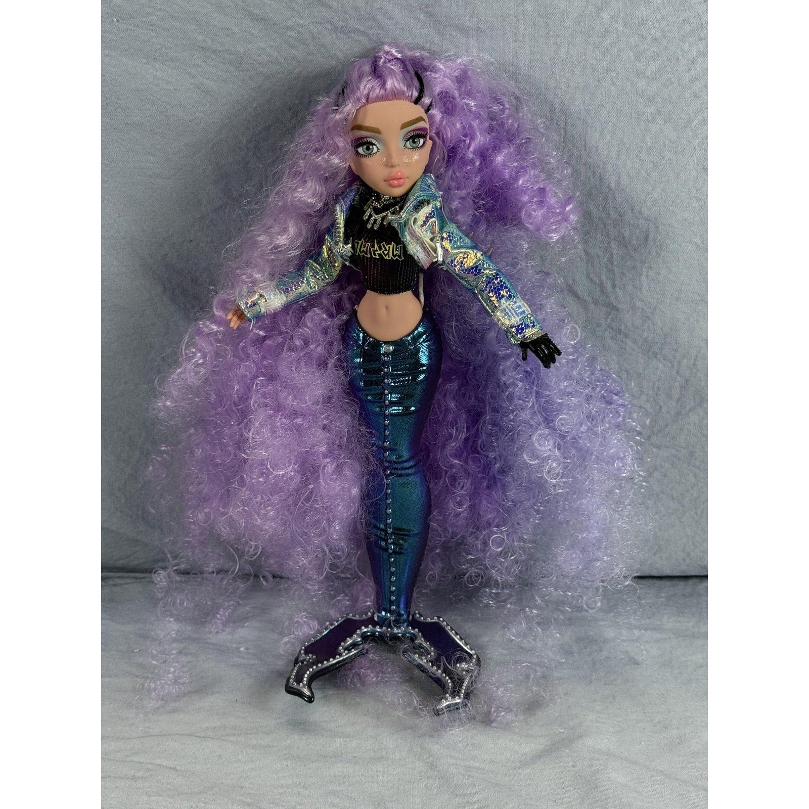 Includes only the items shown: doll with jacket, top, tail, and fin. No additional accessories or packaging included.