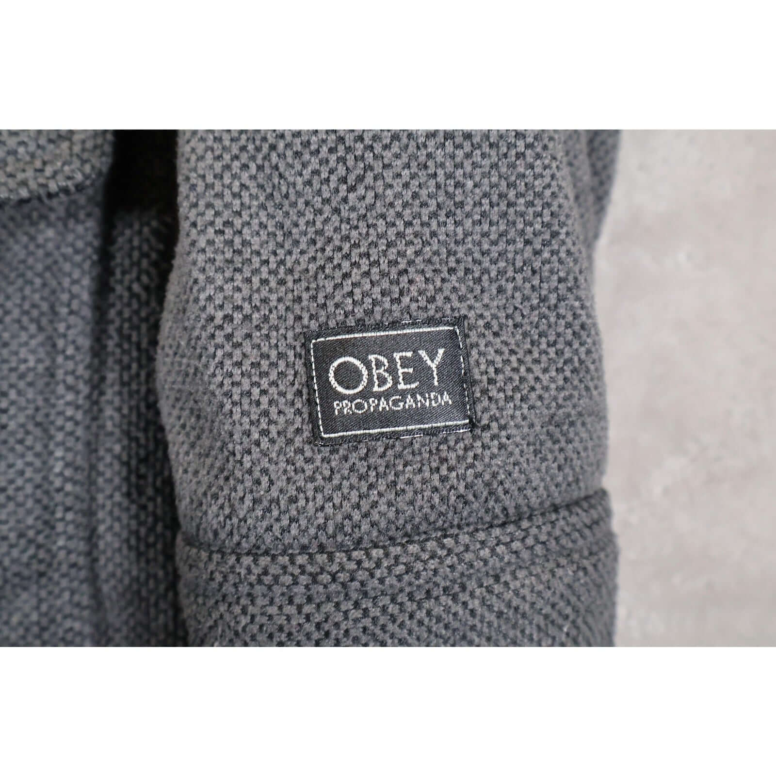 Obey Propaganda patch logo on left sleeve; signature streetwear styling