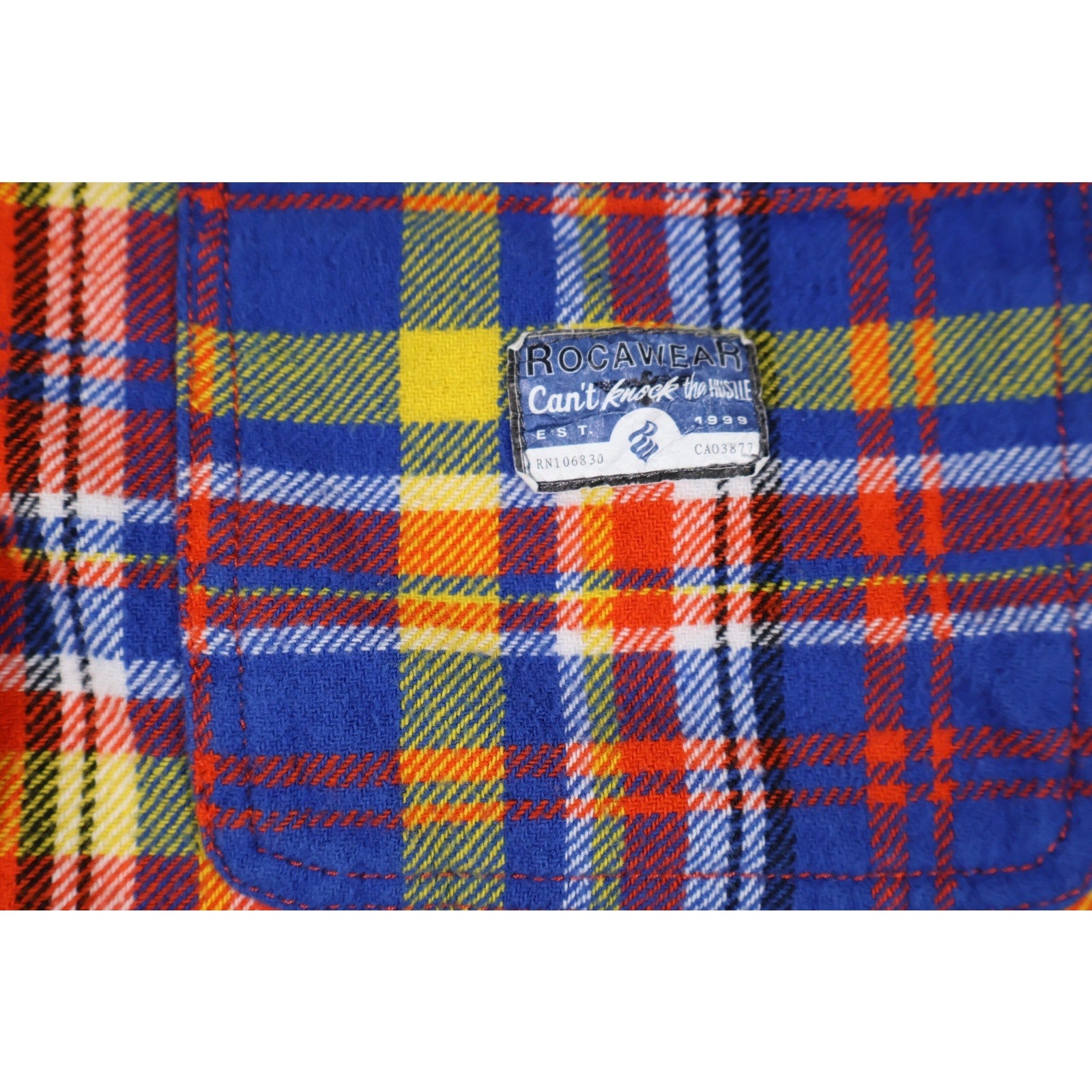 Rocawear Shirt Mens 2XL Red Blue Yellow Plaid Flannel Button Up Streetwear