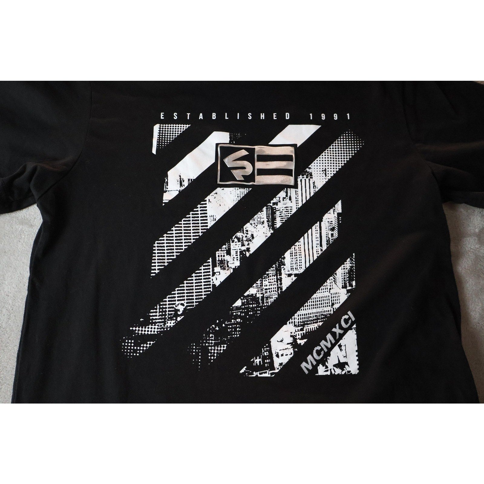 Front text detail: 'ESTABLISHED 1991' and 'MCMXCI' in print