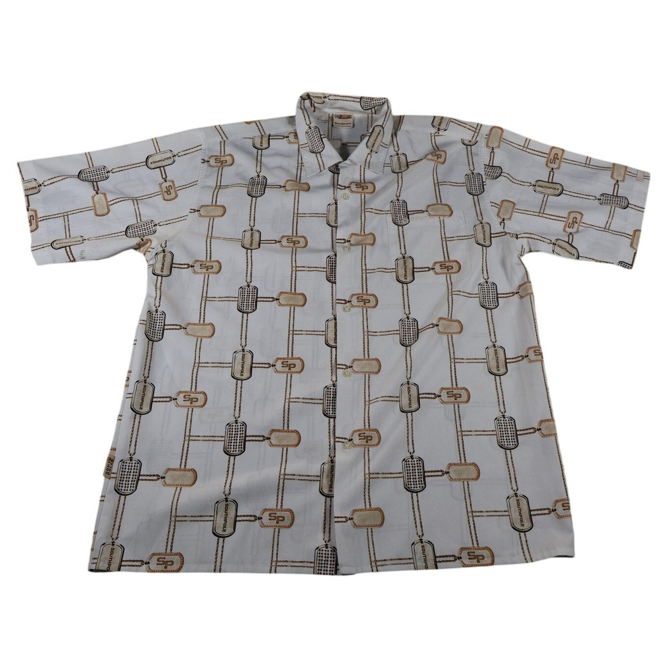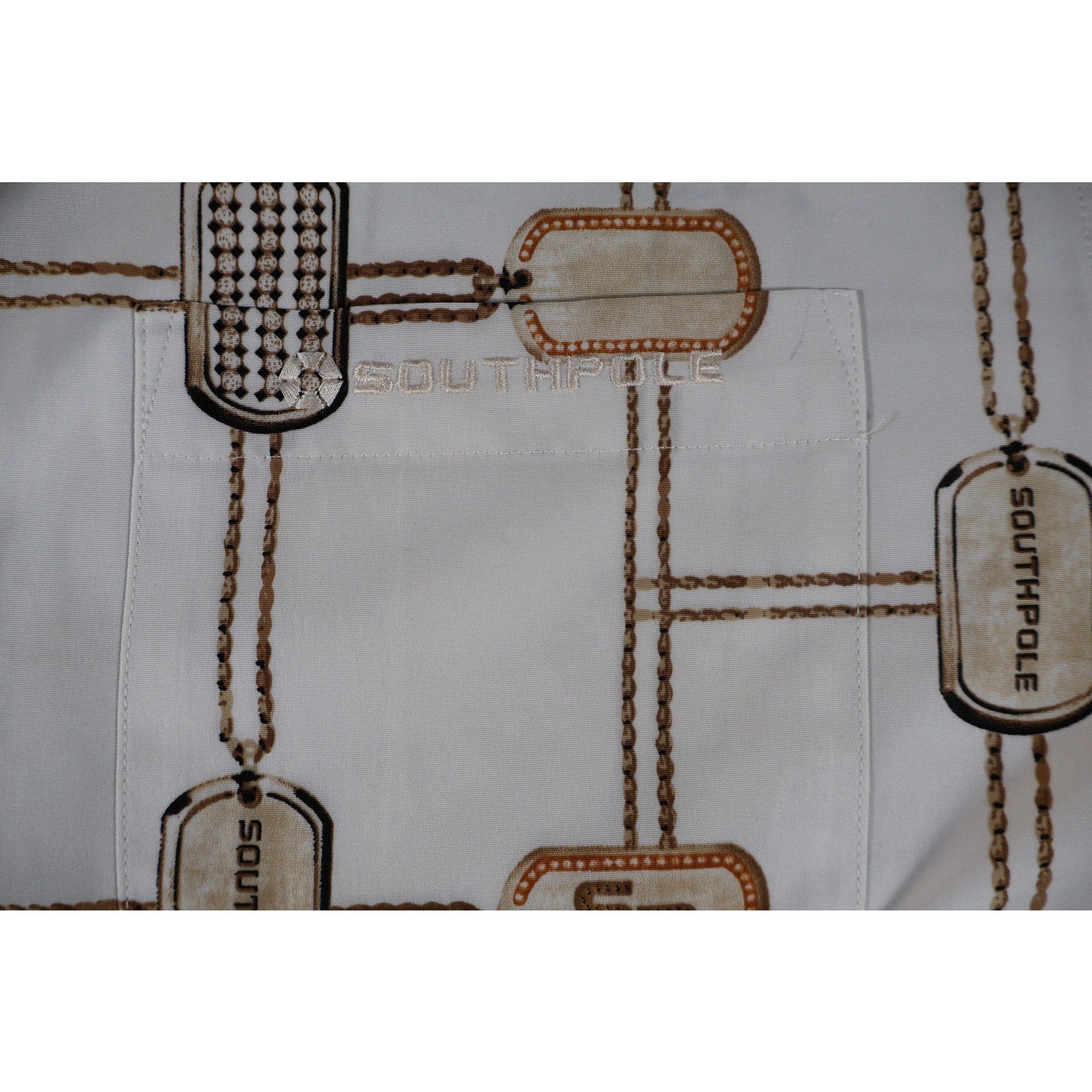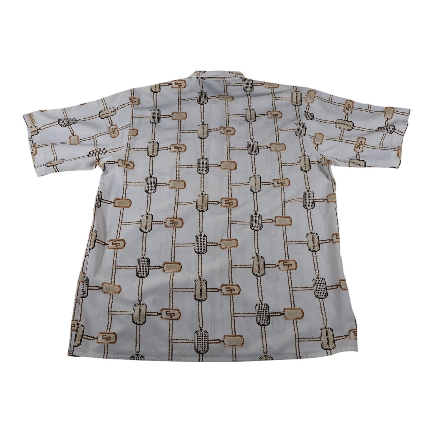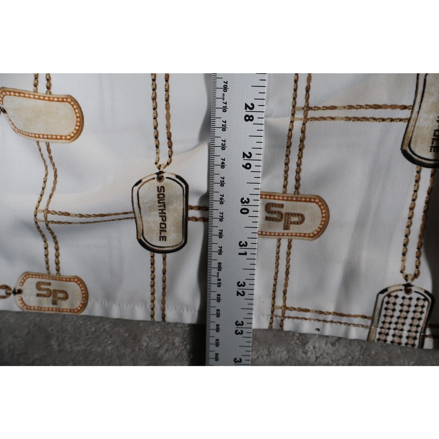 Southpole Shirt Mens XL White Brown Short Sleeve Button Up Tag Chain Graphic Casual