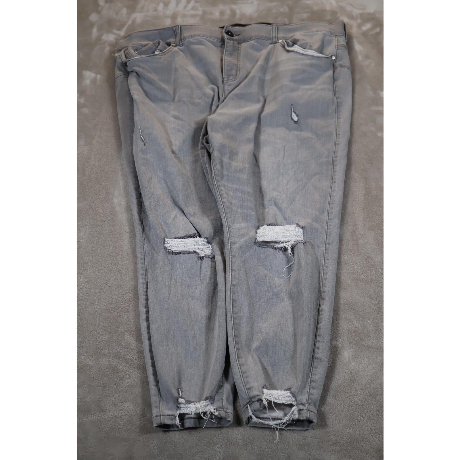 Torrid Bombshell Skinny Jeans Womens 24R Gray Distressed Ripped Super Soft Denim