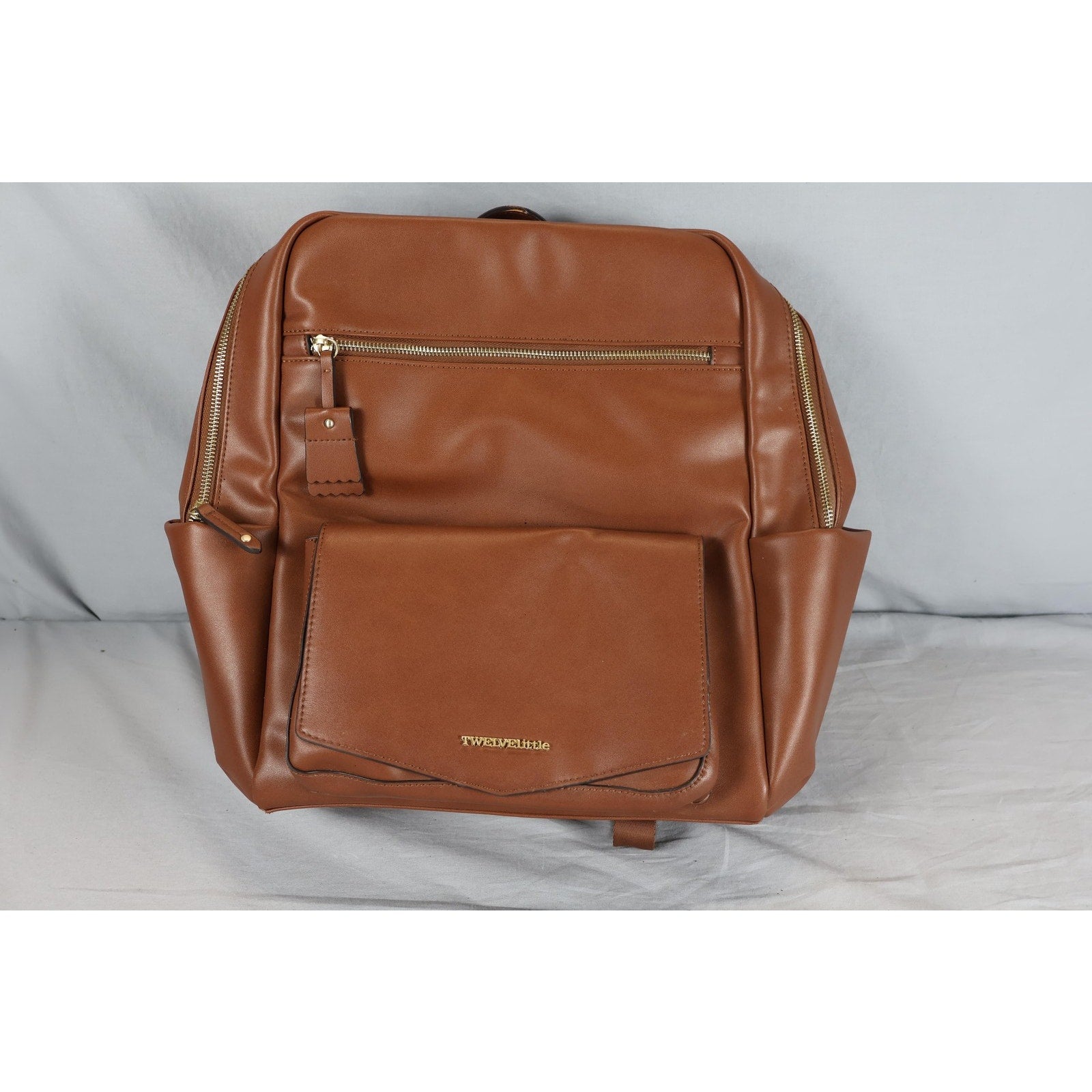 TWELVElittle Brown Vegan Leather Diaper Backpack Bag Changing Pad Pockets Travel