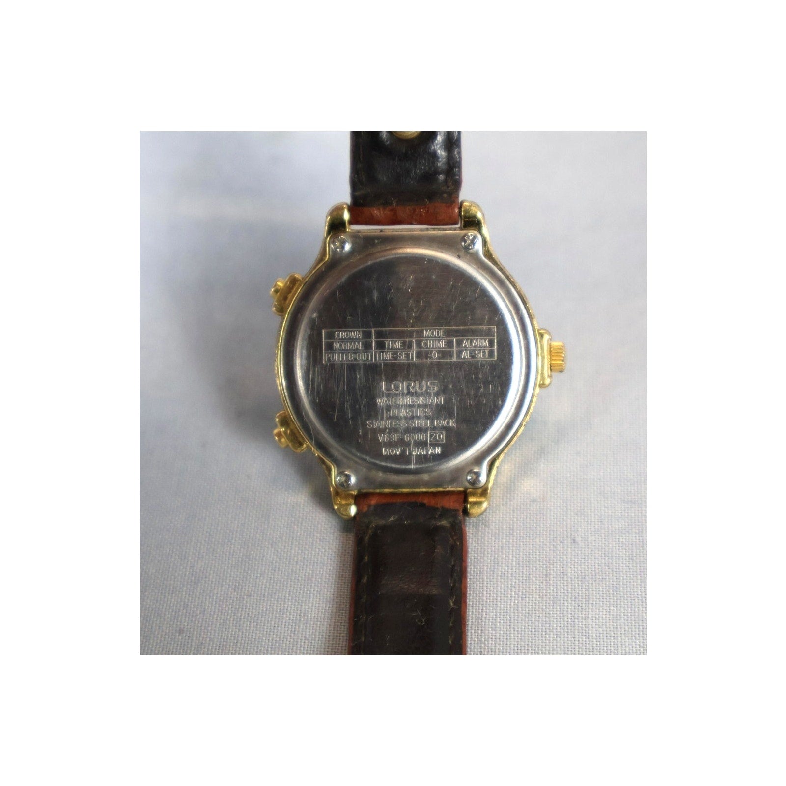 Vintage Lorus Quartz Mickey Mouse Watch Brown Leather Strap Japan Alarm Chime