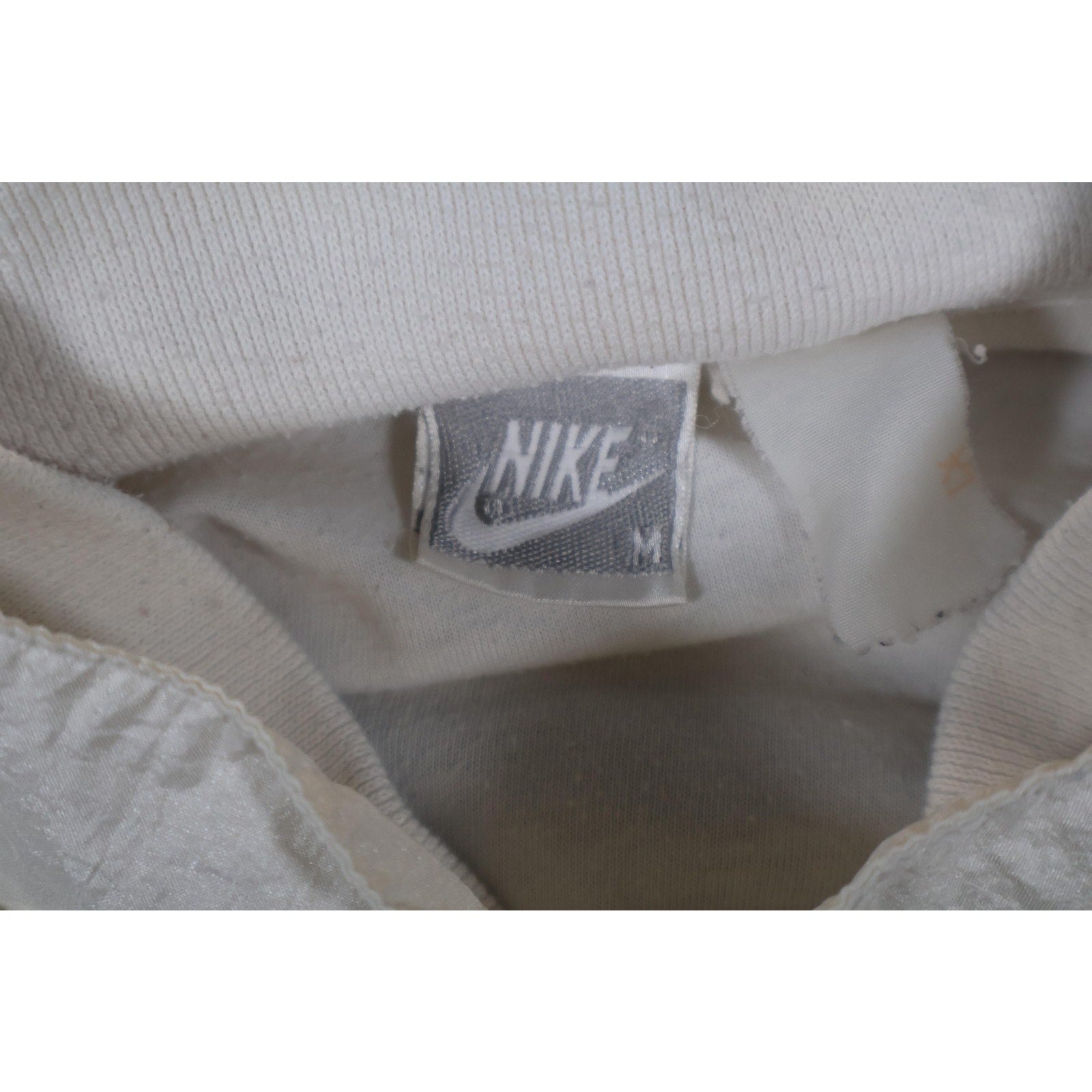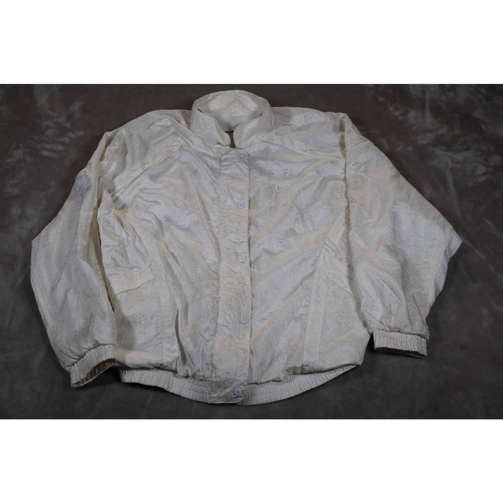 Vintage Nike Jacket Mens Medium White Crinkle Windbreaker Swoosh Logo 90s Athletic
