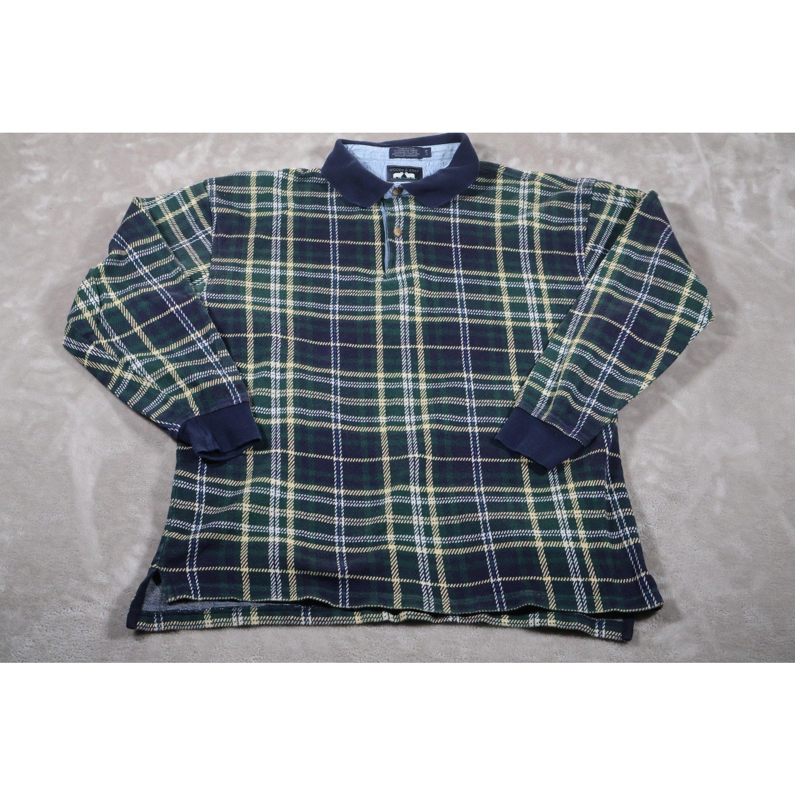 Woods & Gray Pullover Shirt Mens Large Green Navy Plaid Long Sleeve